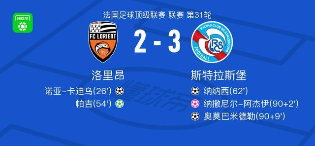 北京时间4月26日法国足球顶级联赛 联赛 第31轮,洛里昂主场对阵斯特拉斯堡。洛里昂诺亚-卡迪乌破门,帕吉破门,纳撒尼尔-阿杰伊自摆乌龙。斯特拉斯堡纳纳西破门,奥莫巴米德勒破门。最终比分洛里昂 2-3 斯特拉斯堡。
